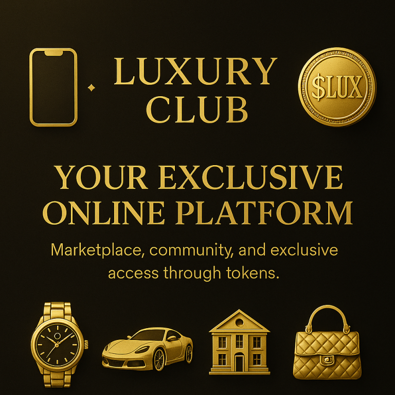 "Luxury Club is an exclusive online platform where high-end luxury goods are offered, traded and presented. This website serves as a central point of contact for our vision: a digital luxury world with its own app, community, classifieds area and the $LUX memecoin. Investors and interested parties can gain insights into the design, functions and future of the project here."